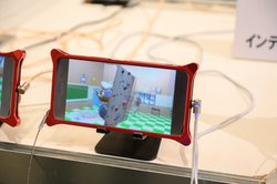 さらにこの生成された3DデータをWi-Fiで伝送し、スマートフォンで表示。スマートフォンにはレンズアレーが貼り付けられており、3D映像を見ながら、視点を変更して見ることができるようになっていた。またリアルタイムのデータではないものの、テーブル型のインテグラル3D装置が展示されており、こちらもタブレットから操作することで自由な視点で見られるようになっていた。