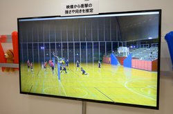今回のシステムでは、映像からボールの位置を認識し、移動速度から衝撃の種類・強さなども生成。これによって得た振動を球体状のデバイスを触ることで、ボールのバウンド、アタックの瞬間など振動で体験することができる。球体はコートを模したテーブル上に、「選手」「ボール」を想定した振動を発するデバイスをそれぞれのチームごとに設置されている。またこの球体は側面が凹んでおり、ボールをアタックした瞬間などに凹むようになっている。例えば選手がボールをアタックすると片側が凹み、ボールを想定した方ではその反対側が凹む。