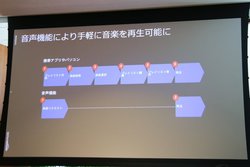 清水氏は「元気がでる曲をかけて」「朝に合う曲をかけて」といったワードによって気分やムードに応じた選曲を行ってくれることも音声機能の主要な使い方であるとして実演。その他にも主要な音声機能として、「最近聴いてない曲」「最近聴いた曲」を再生してくれる機能、「この曲と似た曲をかけて」といった類似曲再生も紹介した。