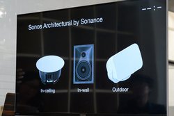 Sonos Ampはもちろん、パッシブ型スピーカーシステムと接続して用いるものだ。Sonosはこれまでパッシブスピーカーをラインナップしたことはなかったが、建築用の埋め込みスピーカーなどを手がけるメーカーSonanceと提携。天井・壁用・屋外用の3タイプの埋め込み型スピーカーを海外で発売。日本では発表されていないが、こちらの製品に関しても日本導入を検討しているとした。