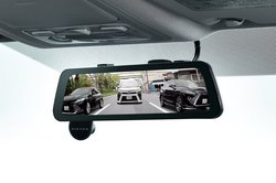 約1.8倍視界が広いフルHDドラレコ搭載電子ミラー。2カメラ前後録画、バック時の補助線表示も