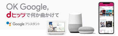さらに、新たにGoogleアシスタント対応を開始。Google Home アプリとdアカウントをリンクさせることで、スマートスピーカー「Google Home」「Google Home Mini」などを利用しているユーザーは、「OK Google、dヒッツで何か曲をかけて」などと話しかけることで、dヒッツにある6,000以上のプレイリストを再生可能となる。