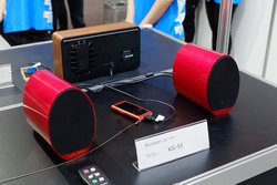 もちろんサウンド面も彩速ナビシリーズは特徴で、ハイレゾ再生のみならず、MQA対応も実現。映像も音も高品質であるとアピールしている。また、同ブースでは首掛けスピーカーも展示。こちらは軽量設計でアクティブに使えることが特徴となっており、同社では家の中だけでなく、自転車での使用もおすすめであるとしている。