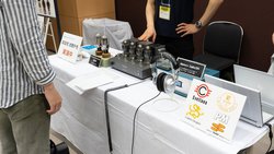 G601のクボテックは、ライブ演奏の臨場感の再現を重視したHANIWA Audioブランドの試聴を実施。3.5インチアルミコーンを搭載したフルレンジスピーカー「HSP-01」と位相制御技術を搭載した専用デジタルアンプ「HDSA01」、電流出力型MCカートリッジ「HCTR-CO」と専用イコライザーの「HEQA03-CI」、専用アナログプレーヤー「The Player」など独自のオーディオシステムにより、音の波形/時間軸を正確に再生するとのこと。