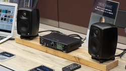 シンタックスジャパン/ジェネレックジャパンは、両社がそれぞれ取り扱っているRMEのDAC兼ヘッドホンアンプ「ADI-2 DAC」、GENELECのアクティブスピーカー「G One/G Two」をセットにしたホーム向けオーディオシステム「ADI-2 DAC STUDIO」を出展(関連ニュース)。音楽制作市場では著名な2ブランドの製品をセット販売することで、スタジオの音を自宅で手頃に楽しめるというコンセプトとのことで、7月25日より台数限定で販売される。