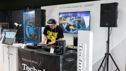 6階 G602のパナソニックはTechnics(テクニクス)ブランドの各製品を出展。入室してすぐ正面には、今年5月に発売されたTechnicsブランド11年ぶりのDJターンテーブル「SL-1200MK7」(関連ニュース)を中心に組まれたDJブースが設置。国内外の大会やクラブプレイで活躍しているDJ BUNTA氏によるパフォーマンスが1日3回披露されている。