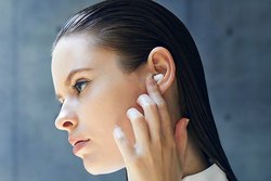 専用ケースもリップスティックほどのコンパクトサイズに収めており、蓋をスライドさせると同時に収納されたイヤホン本体が持ち上がる独自機構を搭載、利便性を高めている。連続使用時間はイヤホン本体が約3時間、ケースによる充電を含め約7.5時間。