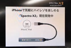 Spectra X2は、同じESS Technologyの省電力DACチップ「ES9118Q2C」を採用し、アップルのMFi認証を取得したLightning接続モデル。従来モデルもLightning-USBカメラアダプターを中継することでiOS端末でも使用することができたが、その場合多くの電力を必要としていた。Spectra X2ではES9118Q2Cを採用することで、消費電力を低減したとのこと。