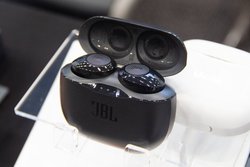 ハーマンインターナショナルのブースでは、JBLブランドのイヤホンやヘッドホンが出展された。TUNEシリーズ初の完全ワイヤレスイヤホン「TUNE120TWS」は6月末に発売されたばかりの新製品。TUNEシリーズは“迫力のJBLサウンドとファッション性” の両立を謳うエントリーラインという位置付けで、TUNE120TWSも4色のカラバリ(グリーンとピンクは今後発売予定)を揃えるなど、ポップなデザインも特徴となる。