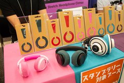 mimimamoブースは、恒例となったヘッドホン対応表ご協力キャンペーンを実施。対応表に記載されていないヘッドホンを持ち込み、対応の確認とヘッドホンの写真撮影をすると、機種ごとに先着1名様に好みのカラー/サイズの「mimimamo」が1つプレゼントされる。