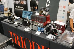 トライオードでは、クロスゾーンの頭外定位ヘッドホン第2弾モデル「CZ-10」を展示。25万円(税抜)の第1弾モデル「CZ-1」に対して本機は9万円(税抜)と価格を抑えただけでなく、100gの軽量化も実現したモデルだ。DSPなどデジタル技術を用いることなく、アコースティックな技術のみで、スピーカー再生のような自然な音を再現するという。