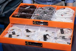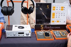 日本ディックスは、同社が製造する4.4mm バランス端子「Pentaconn」の関連製品を出展。形状や材質も様々なPentaconnプラグや、それらのプラグを用いて同社が製作したヘッドホン/イヤホンケーブルなどを展示。ケーブルも2万円台の銀コート線8芯ケーブルから、10万円を超える純銀線8芯ケーブルまで取り揃えている。