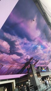 まず目を引くのは館内各所に、国内有名クリエイティブスタジオ「WOW」がプロデュースしたインスタレーション・アートで空間を演出している。4Fエントランスロビーには球状のオブジェクト「Light Sculpture」が出迎える。また最上階12FのIMAXシアター前のホワイエ天井を見上げると、10m×31mの巨大LEDビジョン「Motion Ceiling」があり、最新作の予告編やアートモーショングラフィックスが表示されている。
