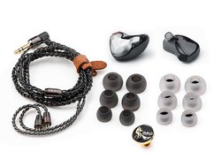 ハイブリッド型の構成を採用しており、ドライバーには2基のバランスド・アーマチュア(Knowles製33518)と、10mmのチタンメッキポリマー振動膜を採用したダイナミックドライバーを1基搭載する。