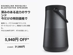 また、人気のワイヤレススピーカー「SoundLink Revolve+ Bluetooth speaker」は5,940円オフの31,860円(税込)となっている。