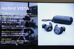 またVISTAでは、同社が協力メーカーと共同開発したという独自のチップセット「JBS1 ワイヤレステクノロジー」を搭載。詳細は非公開とのことだが、旧製品では右側イヤホンをマスターとしていたが、本技術ではケースから先に取り出した方のイヤホンに主として伝送し、もう一方はその伝送情報を自ら受け取るような形で接続するとのこと。これにより接続の安定性を向上、消費電力や映像視聴時の遅延などを抑えたという。