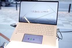 「ZenBook Edition 30」は13.3インチディスプレイのコンパクトサイズで、天板はホワイトカラーの本革張り。機能面はZenBook 14/15と同等で、タッチパッド部に「ScreenPad 2.0」を採用。価格は149,030円(税抜)。