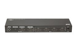 4K/60Hz(4:4:4/8bit)やHDR10に対応し、PS4 Proなどのゲーム機やレコーダー、PCなど最大4台のHDMI出力機器とテレビ1台を接続可能。リモコンが付属し、番号を指定しての切り替えや、後述するオーディオ出力の操作にも対応する。