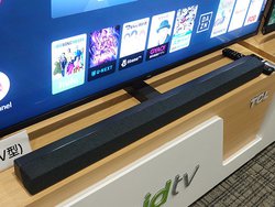 音声面ではドルビーアトモス対応のサウンドバーとの一体デザインを採用している。