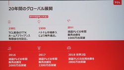 そして、液晶パネル製造を行う「CSOT(China Star Optoeletronics Technology/華星光電)」をグループに抱え、垂直統合型のテレビ生産体制を持っていることにも言及。パネル、モジュール、そしてテレビ本体と一気通貫で生産できる能力を持つことが他社にないTCLの強みだとし、「こうした垂直統合型の体制と、常に革新を追い求める姿勢が我々の成長のベースとなっている」とした。