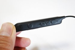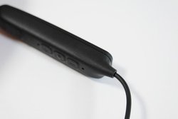 ケーブルはボックスユニットの中程からでなく先端から伸びているが、こうしたデザインは最近のネックバンドスタイルのワイヤレスイヤホンでは少なくなっているので、どこかレトロな感じもする。また、耳元はフック状となっているので、装着スタイルはループ掛けになる。