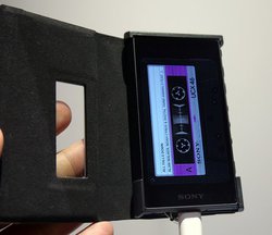 同機能は同時発表のZX500やA100にも搭載されているが、本機では同機能がデフォルトでオンになっており、専用ケースを装着することで、カセットテープウォークマンそのものであるかのような見た目を実現することができる。