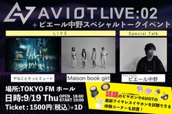 バリュートレードは、AVIOTの主催ライブ「AVIOTLIVE:02」を9月19日にTOKYO FMホールにて開催する。一般入場は1,500円(1ドリンク制)。