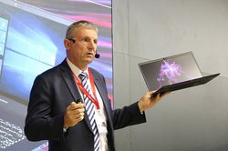Dynabook Europe GmbH社長 ダミアン・ハウメ氏が登壇。DynaBookからは他に、欧州向けモデルとして新たな15インチノートブックPC「Tecra X50-F」も発表された。解像度フルHDのIGZOディスプレイを搭載し、470nitの高輝度を実現。また17時間の連続駆動が可能な長時間バッテリーを内蔵する。CPUは第8世代Intel Core i3-8145U/i5-8265U/i7-8565U、またはi5-8365U vPro/i7-8665U vProプロセッサーから選択できる。質量が約1.36kgという軽量さも特徴だ。欧州では10月に発売予定で、価格は未定。日本での展開は検討中とした。
