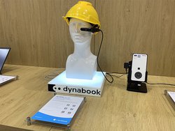 スマートグラスとポケットサイズPCを一体とした、作業現場向けの“dynaEdge”「DE-100 with AR100 Viewer」も展示。Dynabookコーナーではこれらの製品で、屋内外のどの場面でも作業効率の向上を図り、働き方改革に寄与するとアピールする。