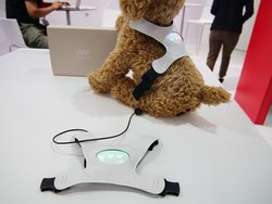 そのほか、LANGUALESS社は、犬に着せて心拍を測定することで、犬の気持ちを推測し、LEDライトの色で表現する商品「INUPATHY」を展示していた。開発に7年掛けたとのことで、すでに1,000台を出荷した人気モデルだ。犬の毛を剃らなくても使用できるほか、心拍数だけではなく心拍のリズムを掴むことで、犬の気持ちを正確に理解するように工夫したという。