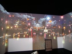 まず、凸版印刷は「Immersive Bon-Dance」を展示。漢字では「没入盆踊」だそうで、その名の通り、仮想的に盆踊りに参加しているような感覚が得られる。仕組みとしては、体に取り付けたセンサーで踊っている方の動きを検知し、リアルタイムでアバターのCGをレンダリングして合成するというものだ。