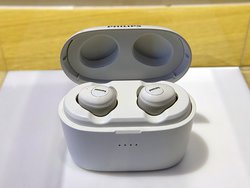 完全ワイヤレスイヤホン「SHB2515」は、Bluetooth 5.0対応で価格は119.99ユーロ。なんと、充電ケースとあわせて110時間という超ロングバッテリー性能を実現し、スマートフォンへの給電機能も備えるためモバイルバッテリーとしても利用できる。イヤホン本体のバッテリー性能は5時間。