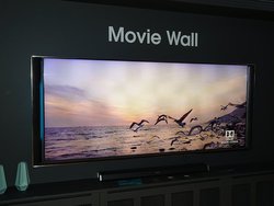 また、アスペクト比21対9の横に長い画面を採用した液晶テレビ「Movie Wall」も展示。5120×2160解像度を持ち、テレビや映画の画面の横にスマートテレビとして様々な情報を表示させるような使い方もできるという。