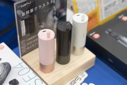 サーモスは、VECLOSブランドから魔法びんの構造を応用したヘッドホン/イヤホン、スピーカーを出展。新製品となるワイヤレスポータブルスピーカー「SPW-500WP」は、いよいよ今月上旬から発売開始予定。ノートパソコンやタブレットの背面に設置することができ、左右分割構造のスピーカーボックスやパッシブラジエーター、デジタル補正技術により、立体感と低域の迫力に優れた音質を再現する。