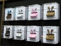 独ベルリンで開催されている「IFA 2019」。ファッショナブルなデザインで人気の「Happy Plugs」は、完全ワイヤレスイヤホン「AIR1」の新色を披露。大理石のようなマーブル調の3色と、豹柄の合計4モデルを出展した。