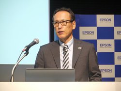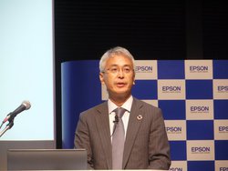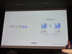 続いて登壇したエプソン販売(株)取締役 販売推進本部長の中野雅陽氏は、プロジェクターの市場動向や新製品のプロモーションについて説明した。