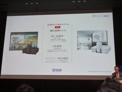 エプソンは、ビジネスプロジェクターの新モデルとして、高輝度モデル/インタラクティブ機能搭載モデル/サイネージモデルの全8機種11モデルを発表(関連記事)。本件についての発表会を開催した。