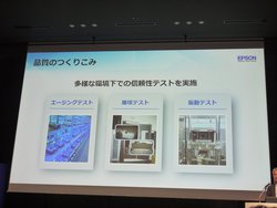その強さの理由は、エプソンのコアテクノロジー。同社が採用する「3LCD方式」は、特殊なレンズを使って色を赤、緑、青の三原色に分離、それぞれ専用のLCDで画像を作成することで数百万色のフルカラー映像を作成。他メーカーが採用する1チップ方式よりも高度な色再現力をもつ。さらに品質のつくりこみ。多様な環境下でさまざまな信頼性テストを実施し、製品の信頼度を高めている。