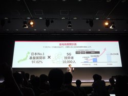 日本国内での基地局展開は、基盤展開率97.02%を目指す。5Gの技術者をグループ会社も含め10,000人超投入し、2020年度1Qにまず47都道府県すべてに基地局を展開する。1年後の2021年度1Qには全国10,000局の構築を、さらに2024年度には5G基地局26,334局の構築を目指していく。