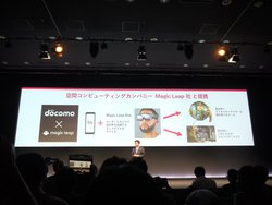 その一つとして、空間コンピューティングカンパニーのMagic Leap社との提携を発表。同社のセンサーとカメラで実世界を認識するウェアラブルデバイス「Magic Leap One」と5Gを連携させ、実世界にデジタルキャラクターが現れて遊べるゲーム、また目の前にはいない人とのコミュニケーションを実現する様子が紹介された。