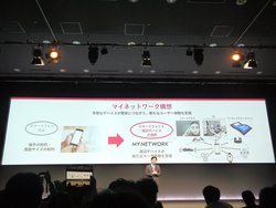 それは、スマートフォンだけのサービスに止まらない。「5Gスマートフォンをハブとして、周辺デバイスをも連携させ新たなユーザー体験を実現する“MY NETWORK構想”の考え方を展開する。デバイスだけでなく、装置やライブなどのコンテンツ開発も行い、新たな体験を提供する。ビジネス面でも、VRゴーグルを利用した働き方改革などを可能にする」と紹介した。