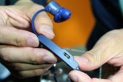4GBのメモリーを内蔵し、スマートフォンを使わずに本体のみで音楽を聴くことが可能な点が特徴だ。再生可能なフォーマットはMP3/WMA/WAV/FLAC/APE。USB Type-C端子経由でPCと接続すると本機がUSBメモリとして認識されるので、楽曲データを直接ドラッグ&ドロップすればOK。曲の選択は本体のボタンで行い、希望のものが再生されるまで曲送りする…というかたちとのことなので、常に多数の楽曲を入れておくというよりは、「トレーニングの前に今回聴きたい曲を数曲入れておく」といった使い方がよさそうだ。