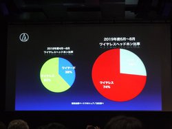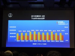 ヘッドホン市場については、「昨年もこの場でBluetoothヘッドホンの市場シェアが半分以上を占めると話したが、1年後の現在も勢いは止まらず、さらに比率を伸ばしている」と説明。「中でも完全ワイヤレスタイプが主流。ヘッドホン市場は様変わりした」との見方を示す。