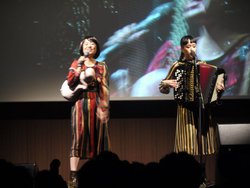 また発表会には、スペシャルゲストも登場。ロックバンド「シーナ・アンド・ロケッツ」の鮎川誠さん、姉妹音楽ユニット「チャラン・ポ・ランタン」の小春さん、ももさんがステージに上がり、司会のサッシャさんとともにオーディオテクニカ製品に対する期待感をおおいに語った。さらに「チャラン・ポ・ランタン」はスペシャルステージも披露。「進め、たまに逃げても」など数曲を演奏し会場を盛り上げた。