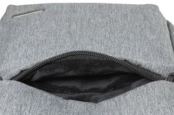 フロントコンパートメントがDAP/イヤホン向けの収納スペースとなっており、中面には毛足が長く柔らかいベロア調生地を採用。2層構造のためDAPとイヤホンを分けて収納できる上、束ねたイヤホンケーブルをまとめ、バッグ内に固定できるボタン付き巻取りベルトも同梱している。