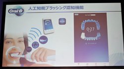 この課題を解消するのが、AIテクノロジーにより実現したブラウン オーラルB「ジーニアスX」に搭載する「人工知能ブラッシング認知機能」というわけだ。同社調査では、「人工知能ブラッシング認知機能」による磨き方を確認しない場合、ブラッシング達成度の平均スコアは74.3点。しかし、ガイドをきちんと確認して磨くと、磨きグセによる偏りが無くなり、平均スコアが100点へ改善。「オーラルケアのリーディングブランドとして、新しいビジョンを創造していきたい。最新のテクノロジーにより市場を牽引していく」と新製品「ジーニアスX」の市場導入へ意気込みを示した。
