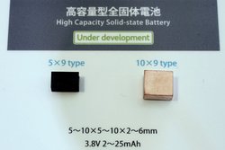 なお、スマホやタブレットなどモバイル端末に搭載できる、より大きな全固体電池は開発できるのかブース担当者に尋ねたところ、主に製造の難易度とコストの面から、現時点での実現は難しいとのことだった。当面は小型/高容量モデルの開発に力を入れていくという。