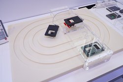 ブースでは全固体電池専用のワイヤレス充電モジュールも展示され、全固体電池を搭載したミニカーを、ピットでワイヤレス充電しつつ走らせる、というデモンストレーションも行われていた。