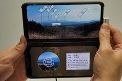観光案内の事例では、今年春にJR九州のD&S(デザイン&ストーリー)列車「いさぶろう・しんぺい」車内で行われた実証実験用コンテンツを展示。アプリを通して、列車が通過している場所の精細な航空写真を表示する、端末のカメラで写した風景の地名を表示させる、各停車駅に設置したカメラからホームのリアルタイム映像を閲覧するなど、大容量でレスポンスの早い通信網を活かした新しい体験が提案された。
