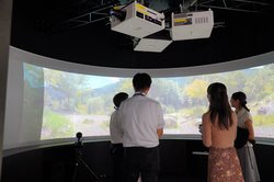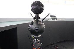 今回の映像は360度カメラで撮影し、円形に配置したスクリーンに複数のプロジェクターで投影。音声はカメラ搭載のマイクロホンアレイで収録した19ch分の録音を元に、22.2chへ合成している。シアター内に用意されたタブレットで任意のアングルだけを表示することができ、音声もアングルに応じたものがリアルタイムで合成/再生される。